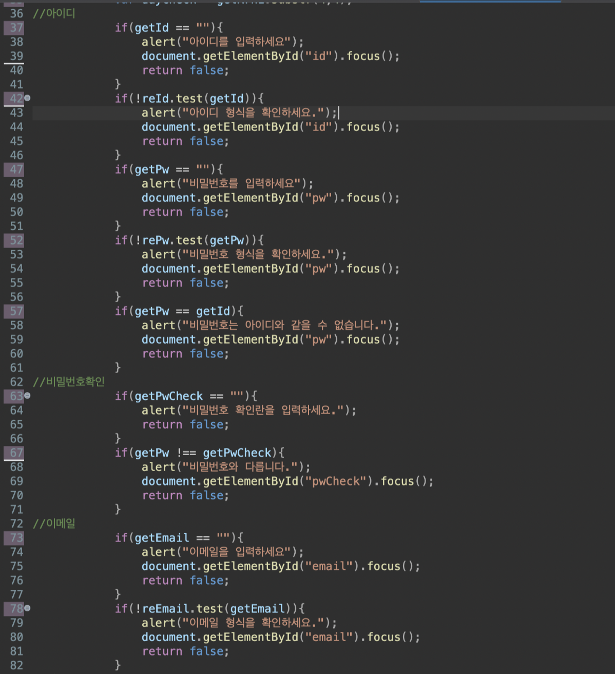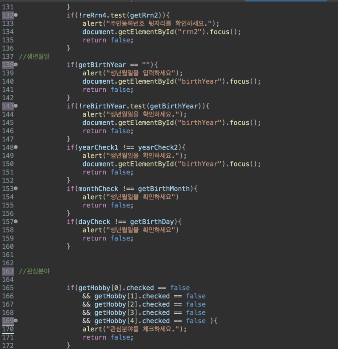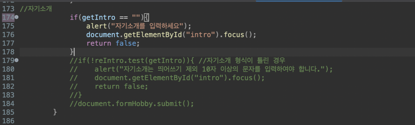 유효성검사를 위한 Js