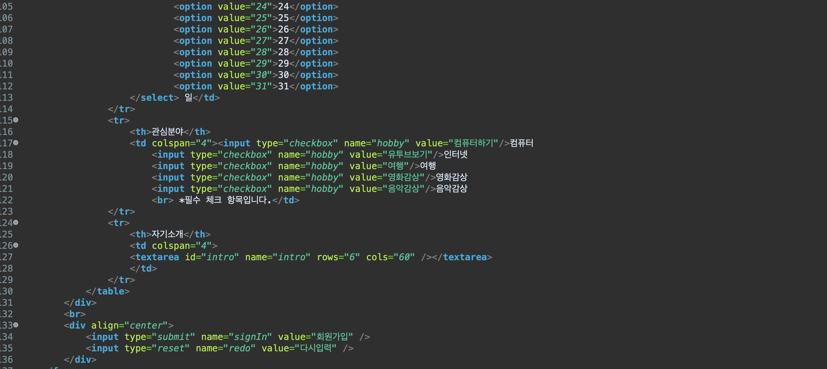 html form태그 안의 name 설정들