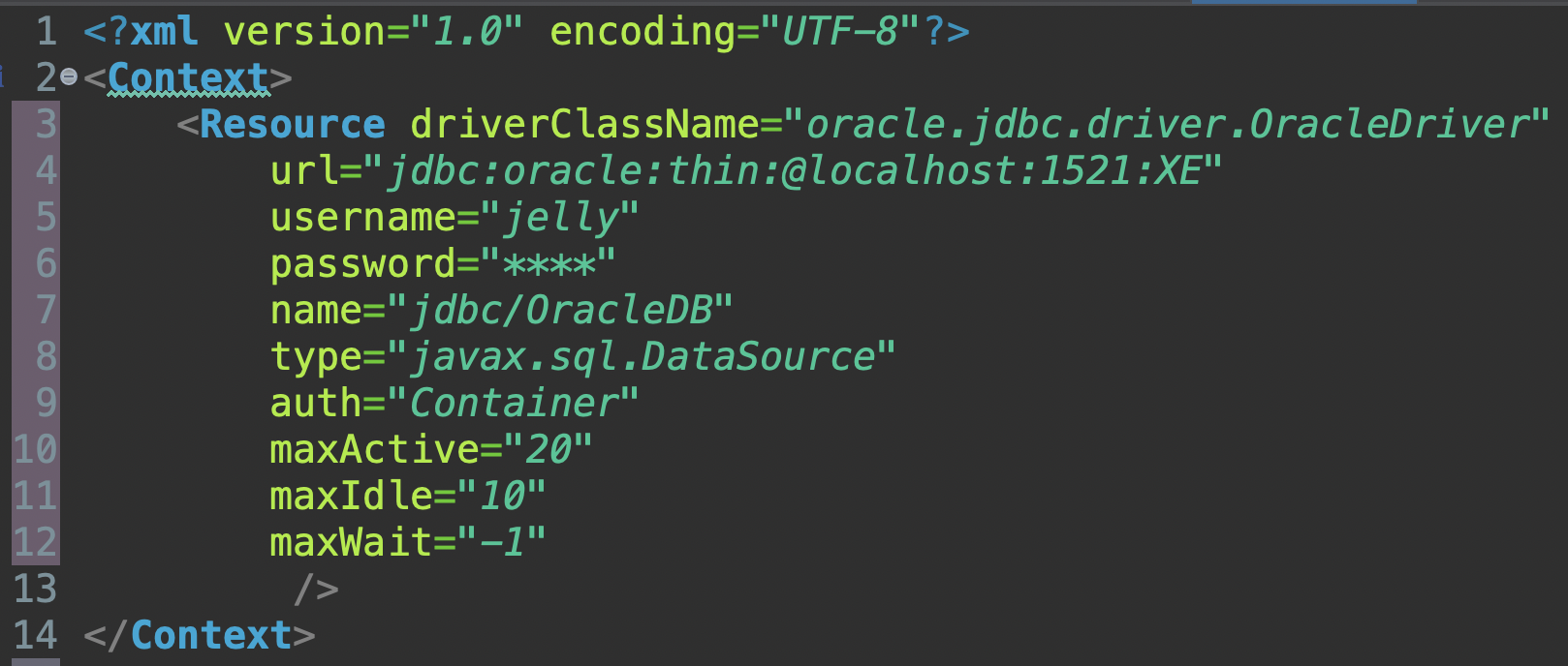 <Resource driverClassName="oracle.jdbc.driver.OracleDriver"
