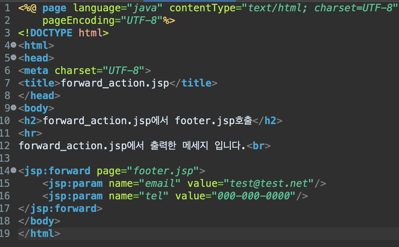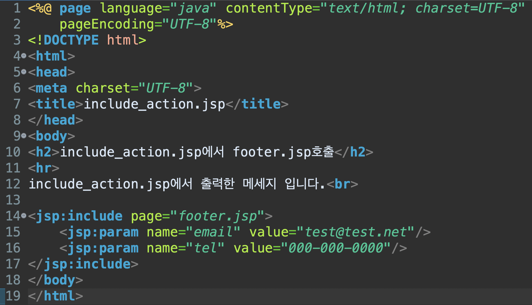 동일한 푸터를 가지고 include 액션태그를 살펴보자.