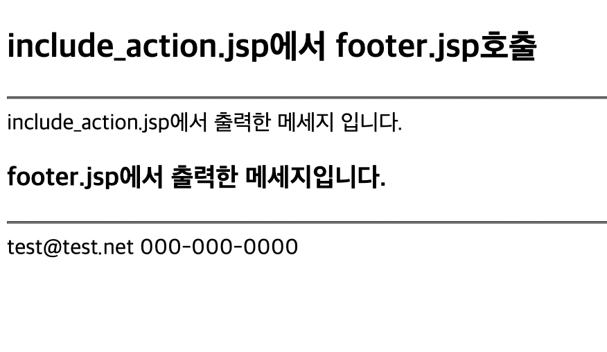 include의 단어 뜻 그대로 footer.jsp를 include_action.jsp에 포함하여 보여준다.