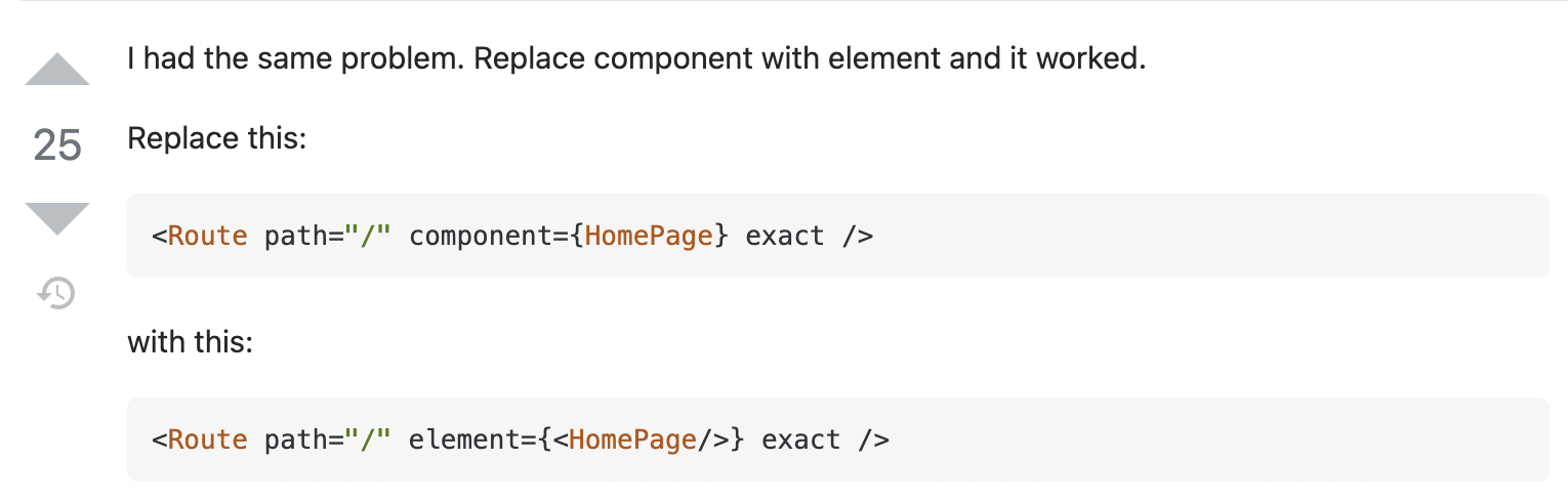 답변을 여러개 훑어보니 React Route v6부터는 Route element라는 것을 사용한다고 한다.