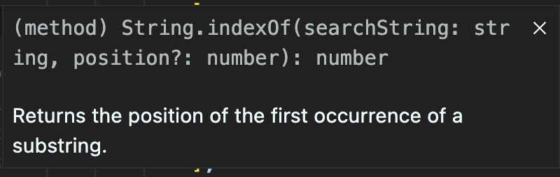 | .indexOf() | '' 내 문자열의 첫 번째 index 반환 | ex) var hi = "안녕하세요. 젤리입니다." hi.indexOf("젤리") => 7 반환 |