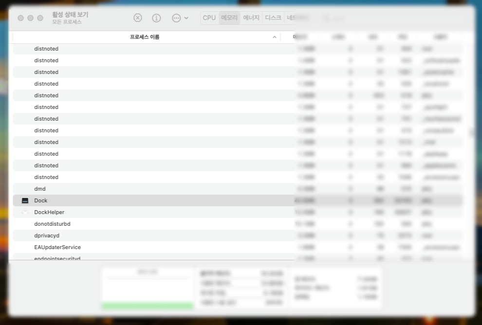 2. 앱에서 Dock이라는 이름의 프로세스를 찾아준다.